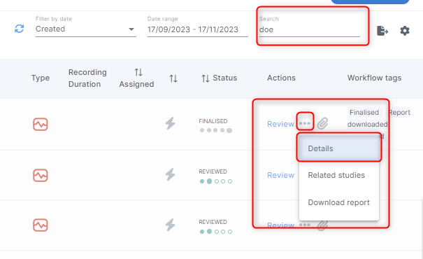 3. Click the ellipsis icon (three dots in the Actions Column) then select Details to open the expanded patient details pop-up.